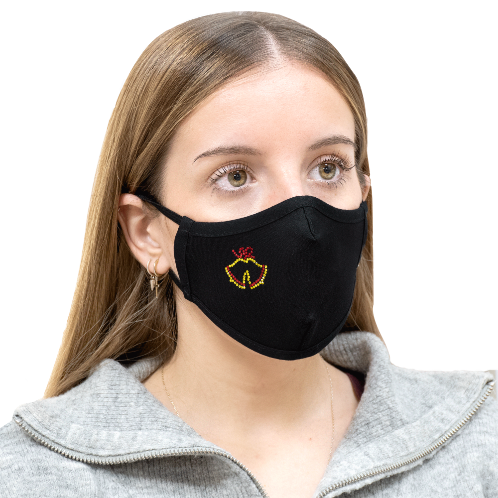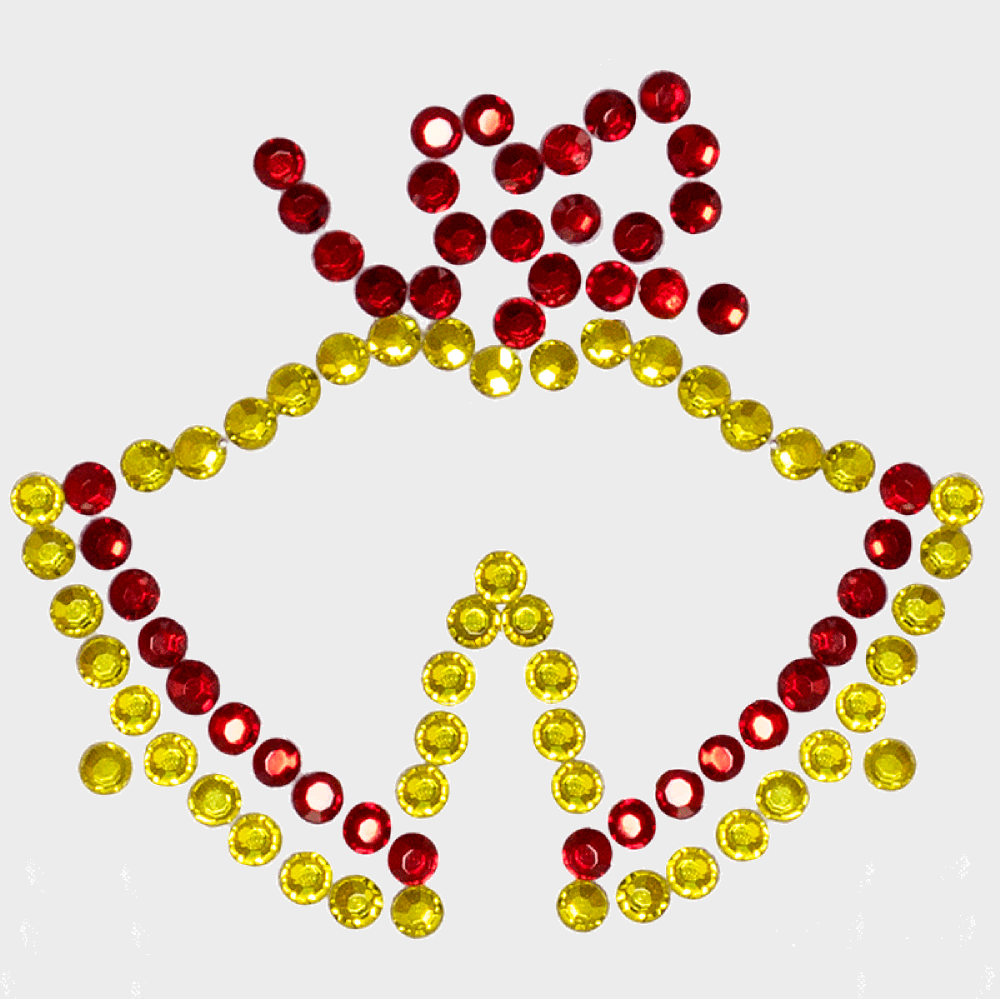 Decora tu mascarilla, gorra, camiseta, jeans, cazadora... con este parche de brillantes en forma de campanas con colores amarillo y rojo