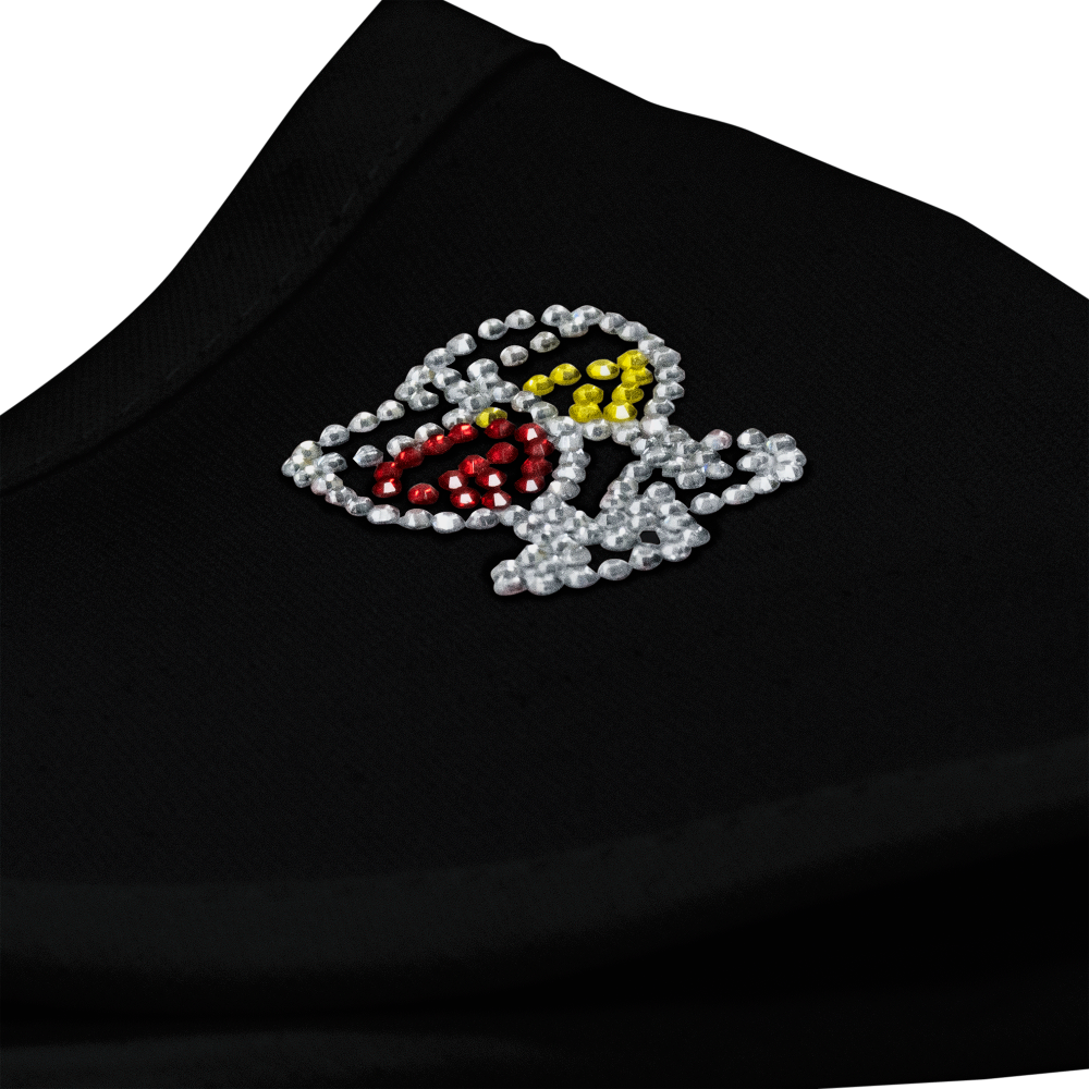 Decora tu mascarilla, gorra, camiseta, jeans, cazadora... con este parche de brillantes en forma de copas de vino con colores amarillo, rojo y plateado