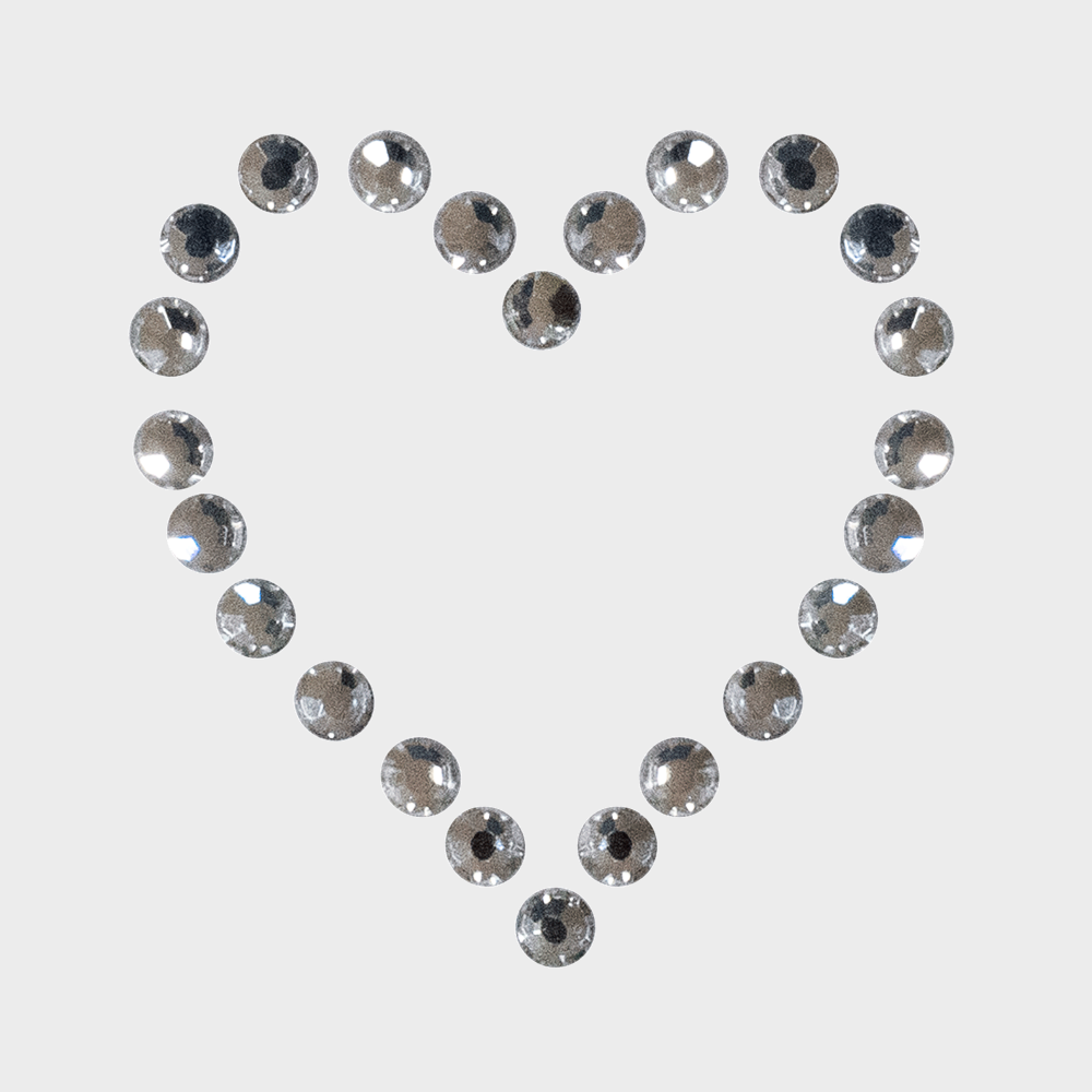 Decora tu mascarilla, gorra, camiseta, jeans, cazadora... con este parche de brillantes en forma de corazón con colores plateados