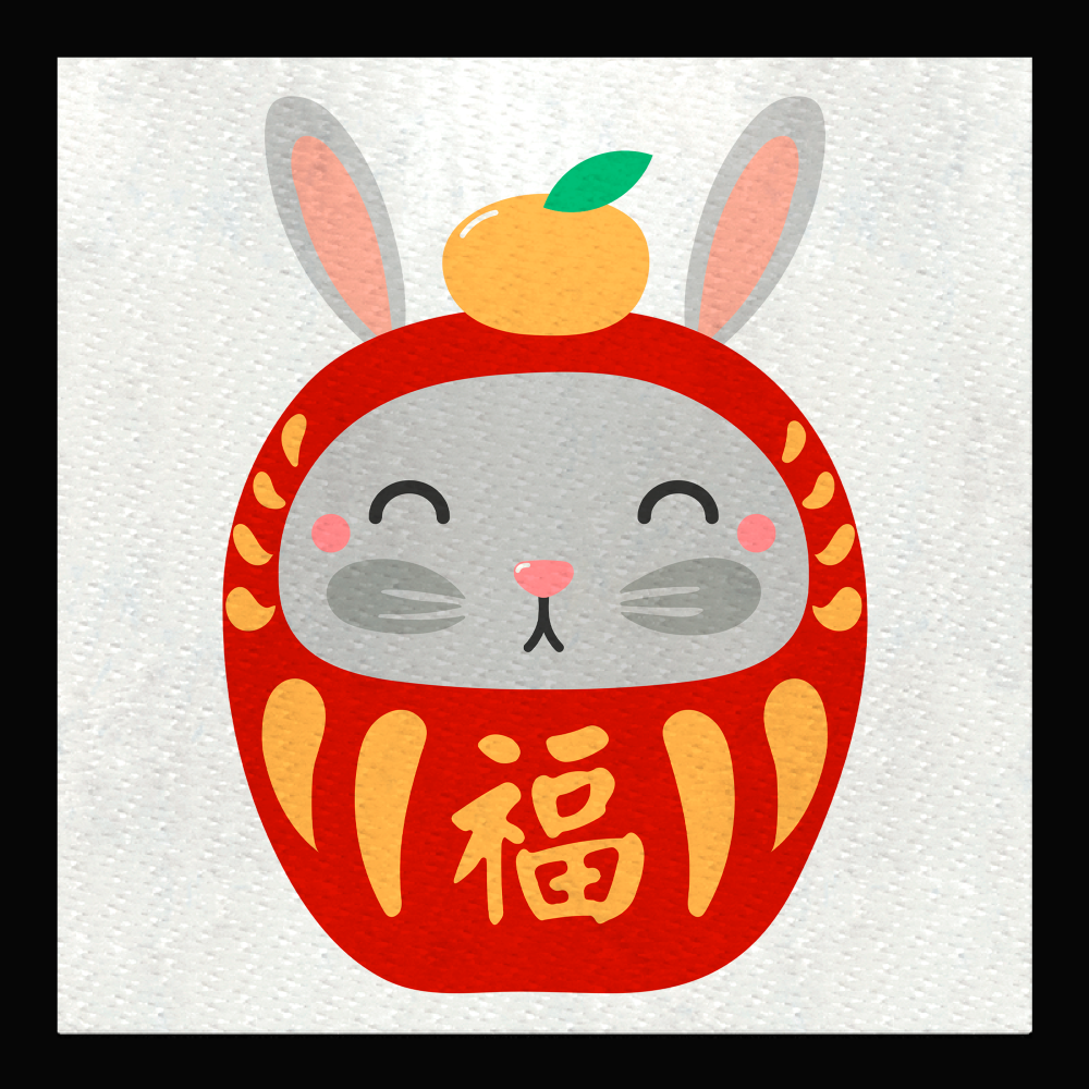 Parche stick DTF Eco flock negro con diseño de conejo chino.