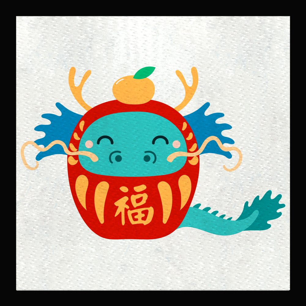 Parche stick DTF Eco flock negro con diseño de dragón chino.