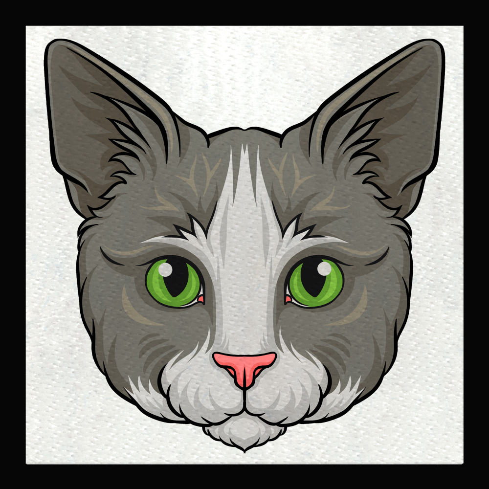 Parche stick DTF Eco flock negro con diseño de cara de el gato con botas.