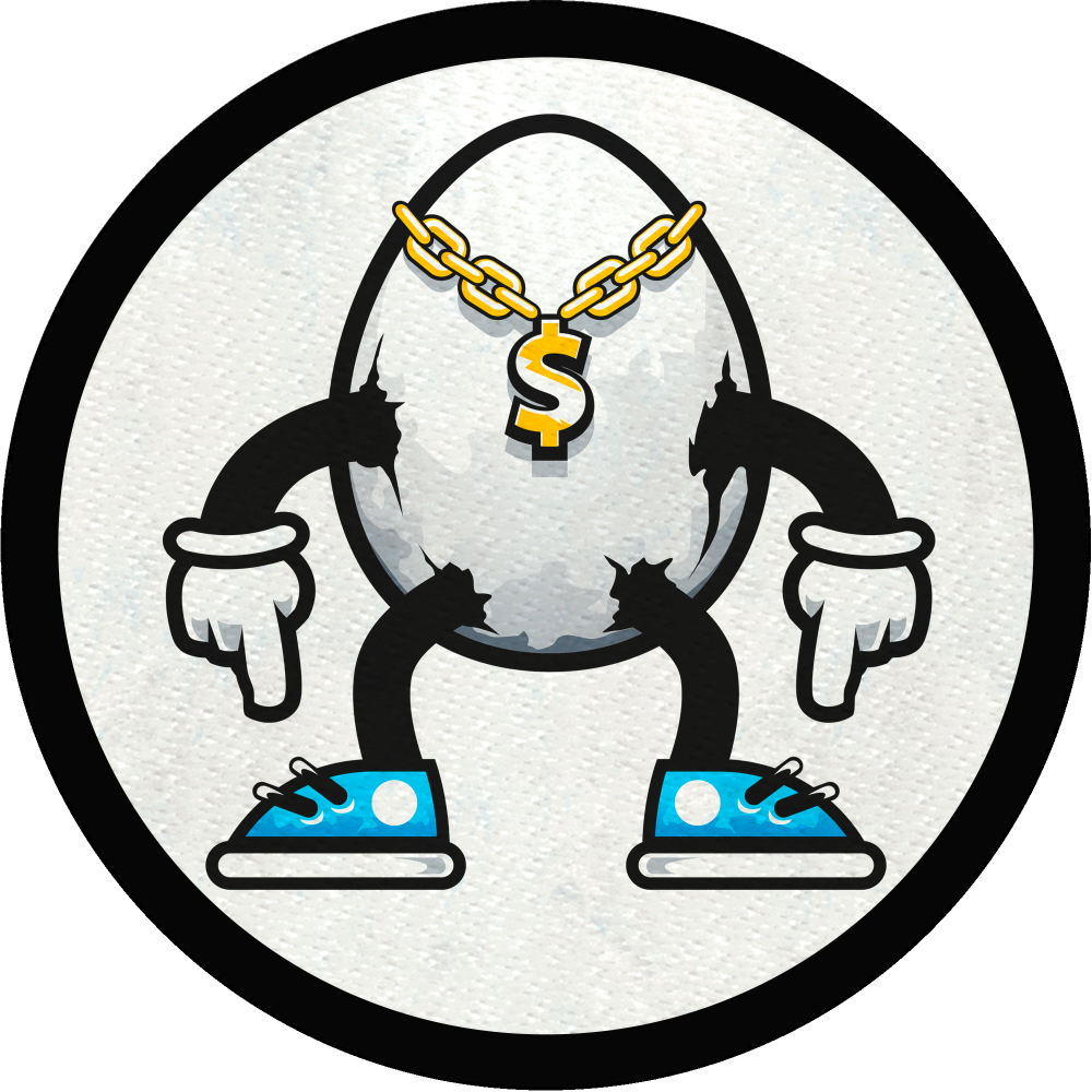 Parche stick DTF Eco flock negro con diseño de huevo rapero.