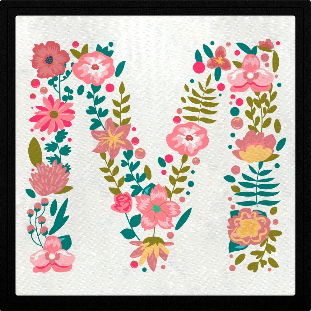 Parche stick DTF Eco flock negro con diseño de M.