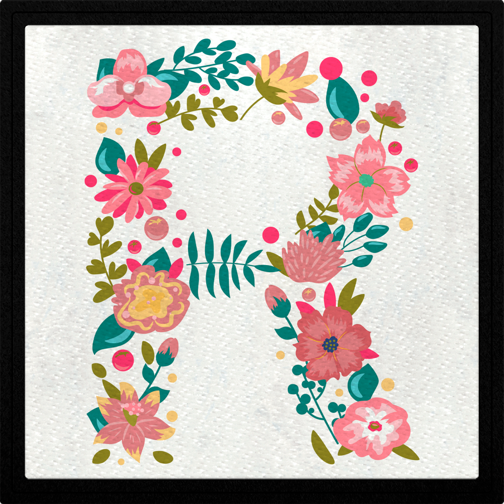 Parche stick DTF Eco flock negro con diseño de R.
