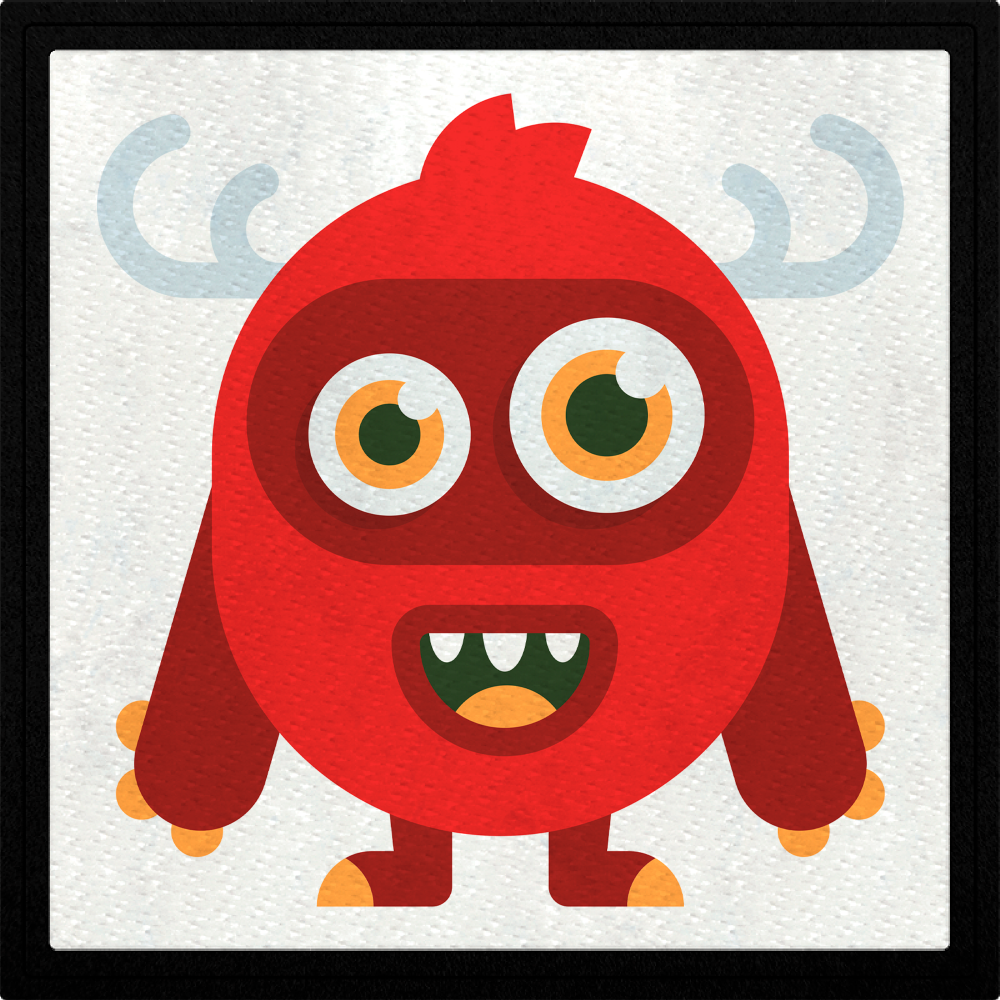 Parche cuadrado monstruo rojo con cuernos