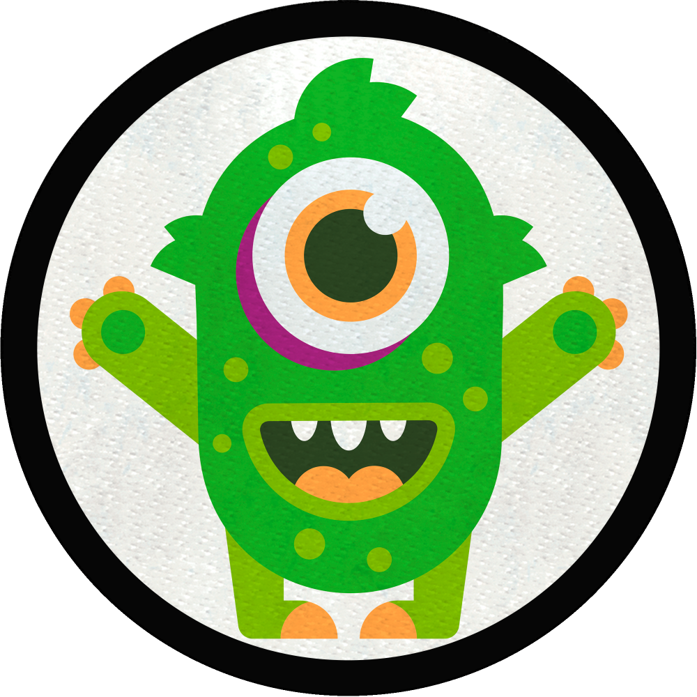 Parche stick DTF Eco flock negro con diseño de monstruo verde con ojeras.