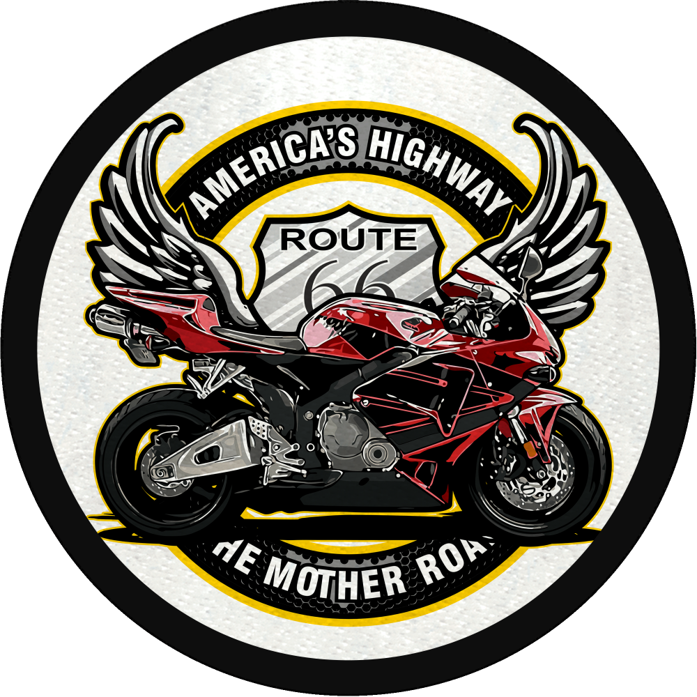 Parche stick DTF Eco flock negro con diseño de ruta 66.
