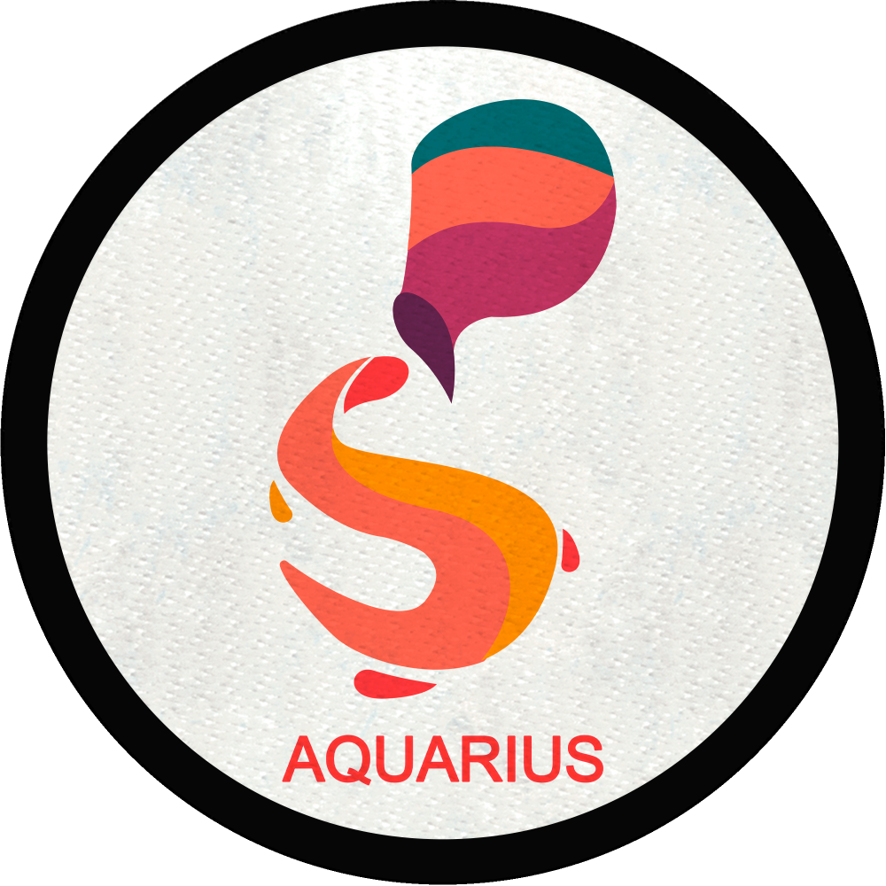 Parche stick DTF Eco flock negro con diseño de acuario multicolor.