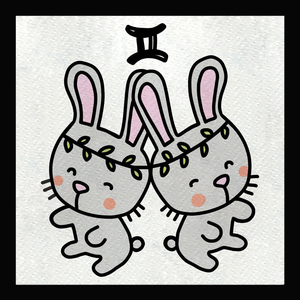 Parche stick DTF Eco flock negro con diseño de dibujo de géminis.