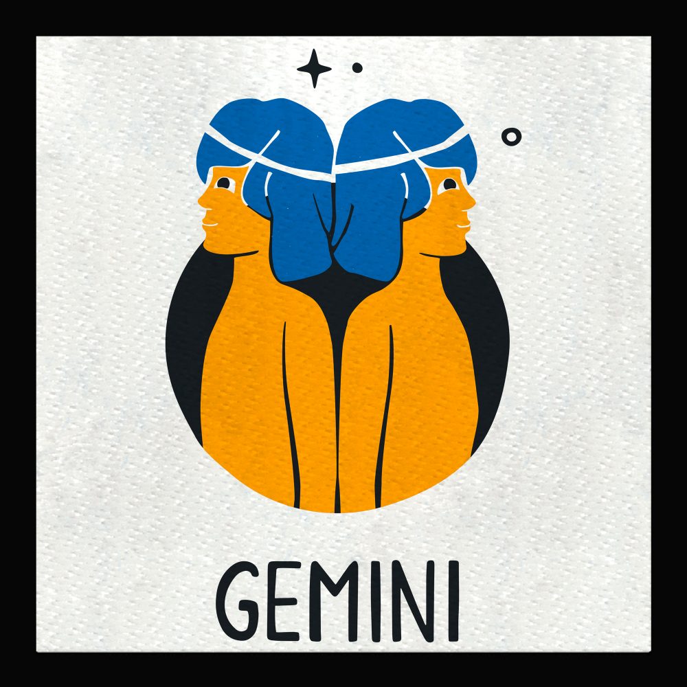 Parche stick DTF Eco flock negro con diseño de gemini.