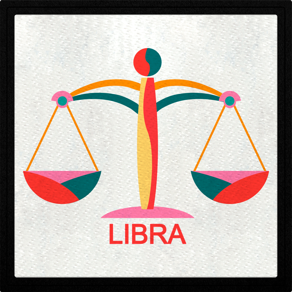 Parche stick DTF Eco flock negro con diseño de libra multicolor.