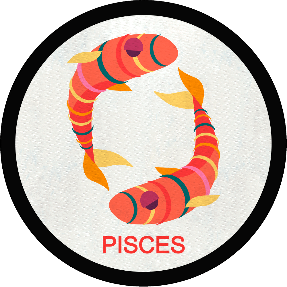 Parche stick DTF Eco flock negro con diseño de pisces multicolor.