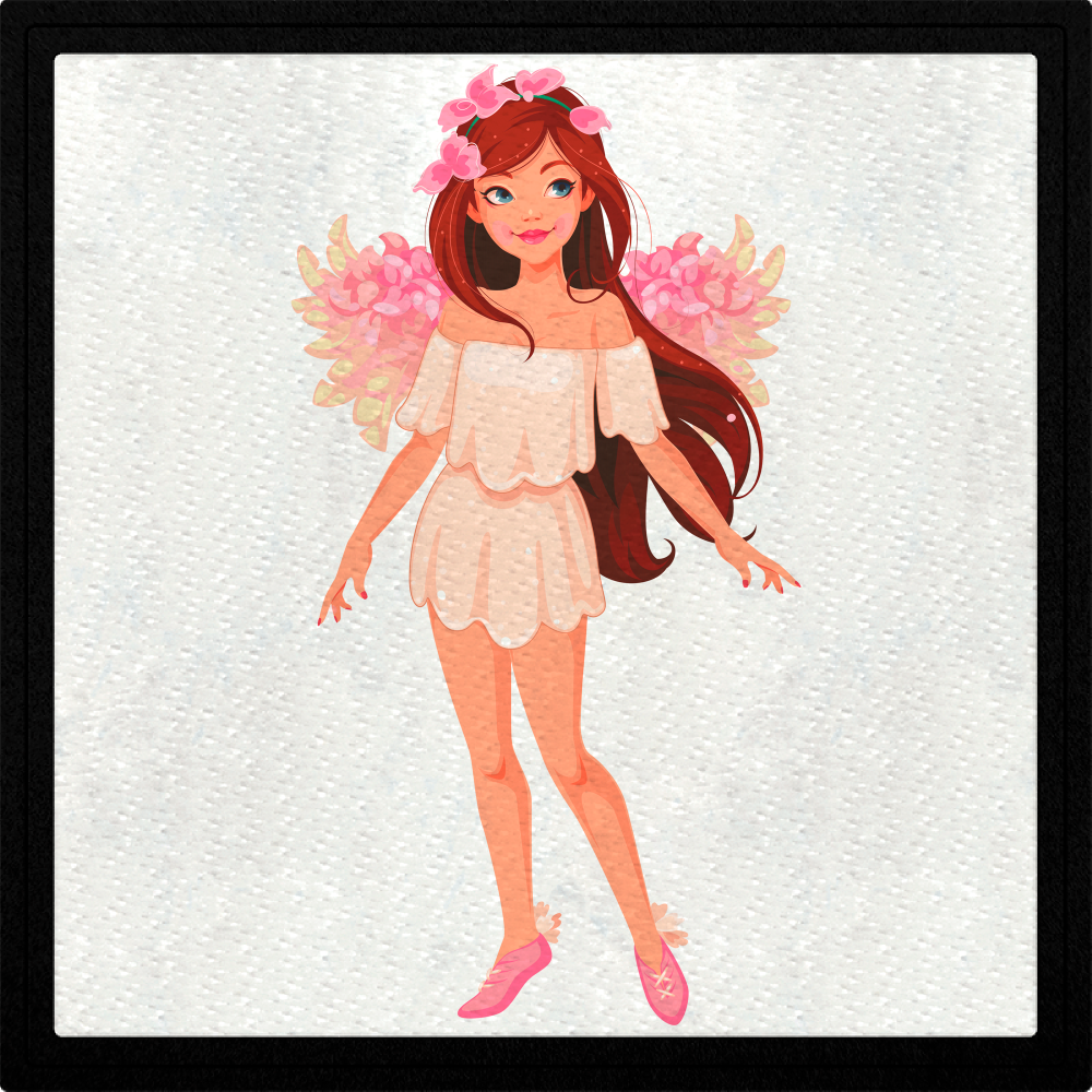 Parche stick DTF Eco flock negro con diseño de hada del bosque.
