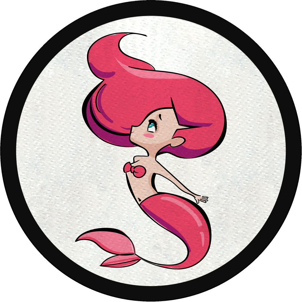 Parche stick DTF Eco flock negro con diseño de sirenita.