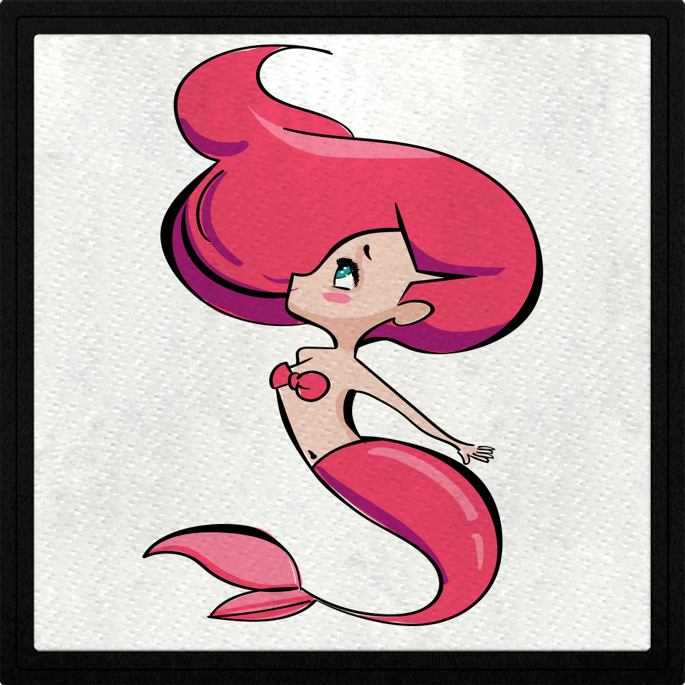 Parche stick DTF Eco flock negro con diseño de sirenita.