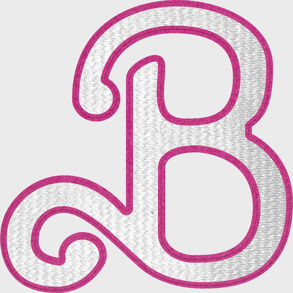Parche de stick (simula puntadas de bordado) en forma de B con vinilo eco flock color magenta.