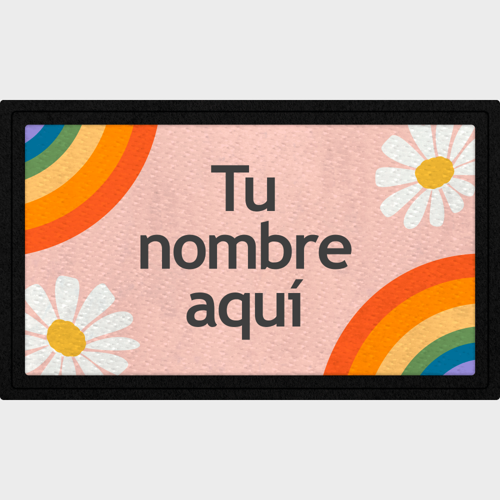 Parche stick DTF Eco flock negro con un diseño de arcoíris, ideal para los más pequeños y puedes personalizarlo con el nombre que quieras
