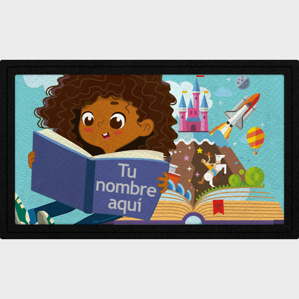 Parche stick DTF Eco flock negro con un diseño de cuento, ideal para los más pequeños y puedes personalizarlo con el nombre que quieras