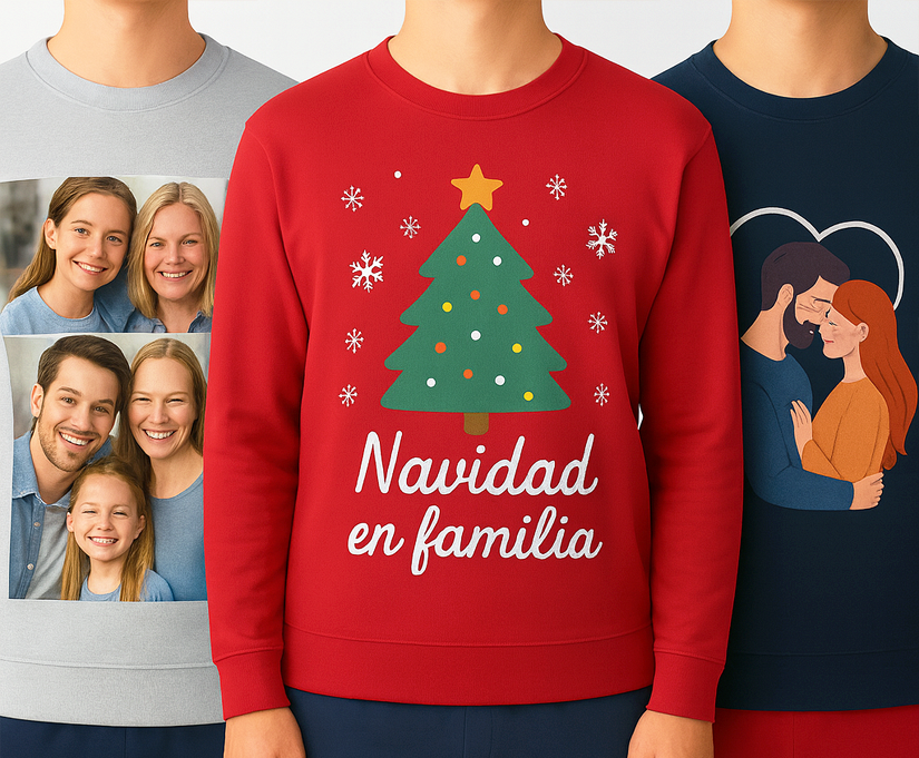 Un pijama personalizado es una forma sencilla y especial de darle un toque único a vuestros momentos en casa. Nada de regalos de siempre: ahora puedes sorprender con un diseño hecho a medida, con vuestra foto, un mensaje cariñoso o alguno de los muchos estilos que ofrecemos. Puedes crear conjuntos para familias o parejas con nombres o detalles que os identifiquen, ideales para Navidad, para hacer un regalo diferente o simplemente para disfrutar de un pijama que habla de vosotros.