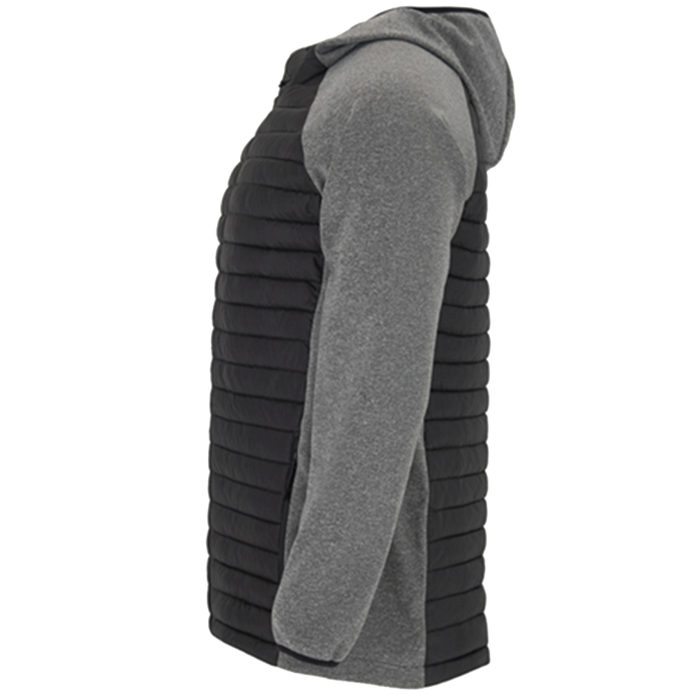 - Manga ranglán, tejido softshell en mangas, panales laterales y tejido acolchado tacto pluma en frontal y espalda.