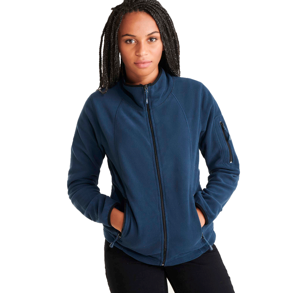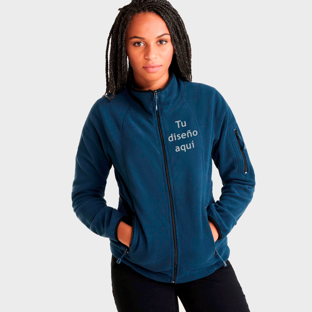 Chaqueta de mujer estilo polar para deporte con cuello alto y manga larga con ribetes en contraste.