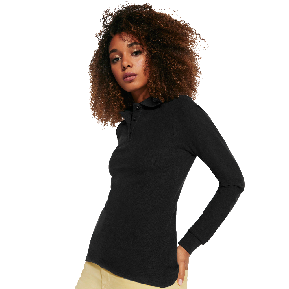 Con cuello y bocamangas acanalados, tapeta de 3 botones y puños canalé 1x1 con elastano.