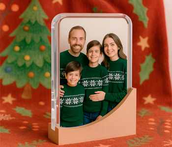 En navidad siempre funcionan los regalos que despiertan la emoción, como este metacrilato con una foto familiar.