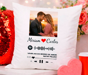 Un cojín personalizado con vuestros nombres, una fecha o una frase especial para San Valentín, perfecto para convertir el sofá en vuestro rincón más romántico.