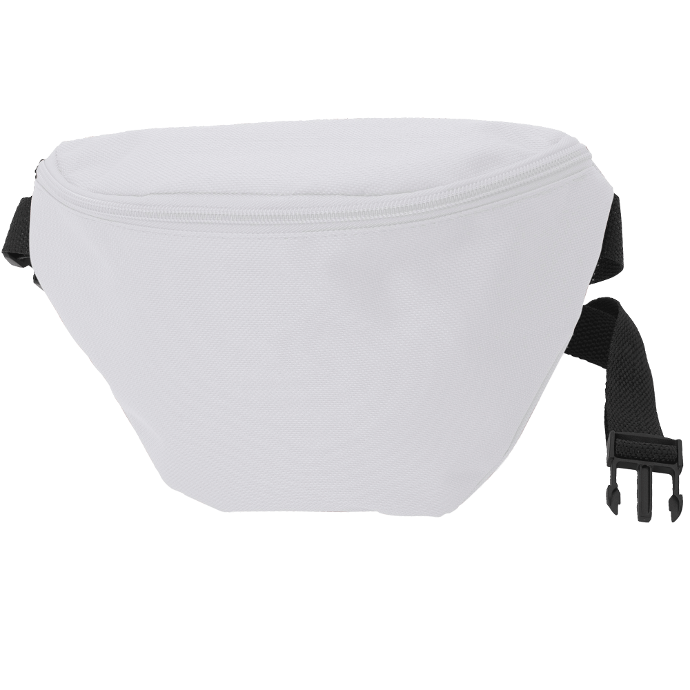 Riñonera de poliéster con un bolsillo frontal y otra trasero con cremalleras y tiradores a juego