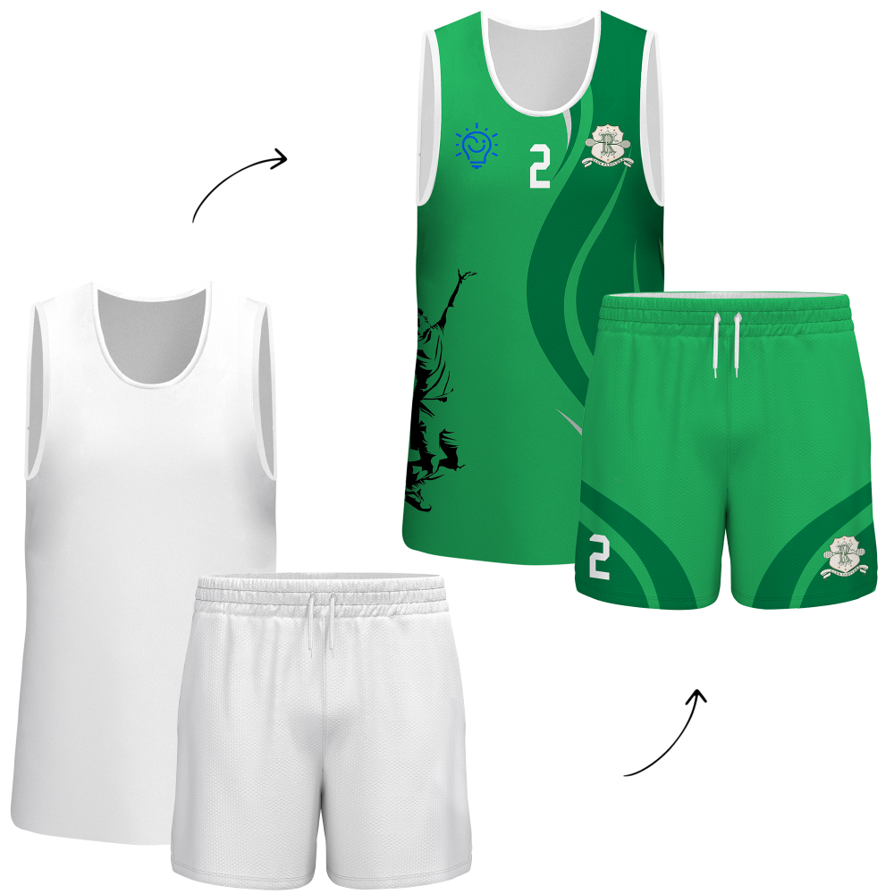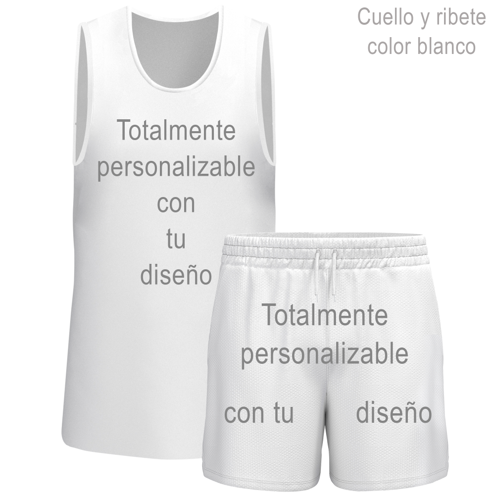 En este conjunto puedes personalizar la totalidad de la parte delantera y trasera de ambas prendas. También podrás escoger el color del cuello y ribete.