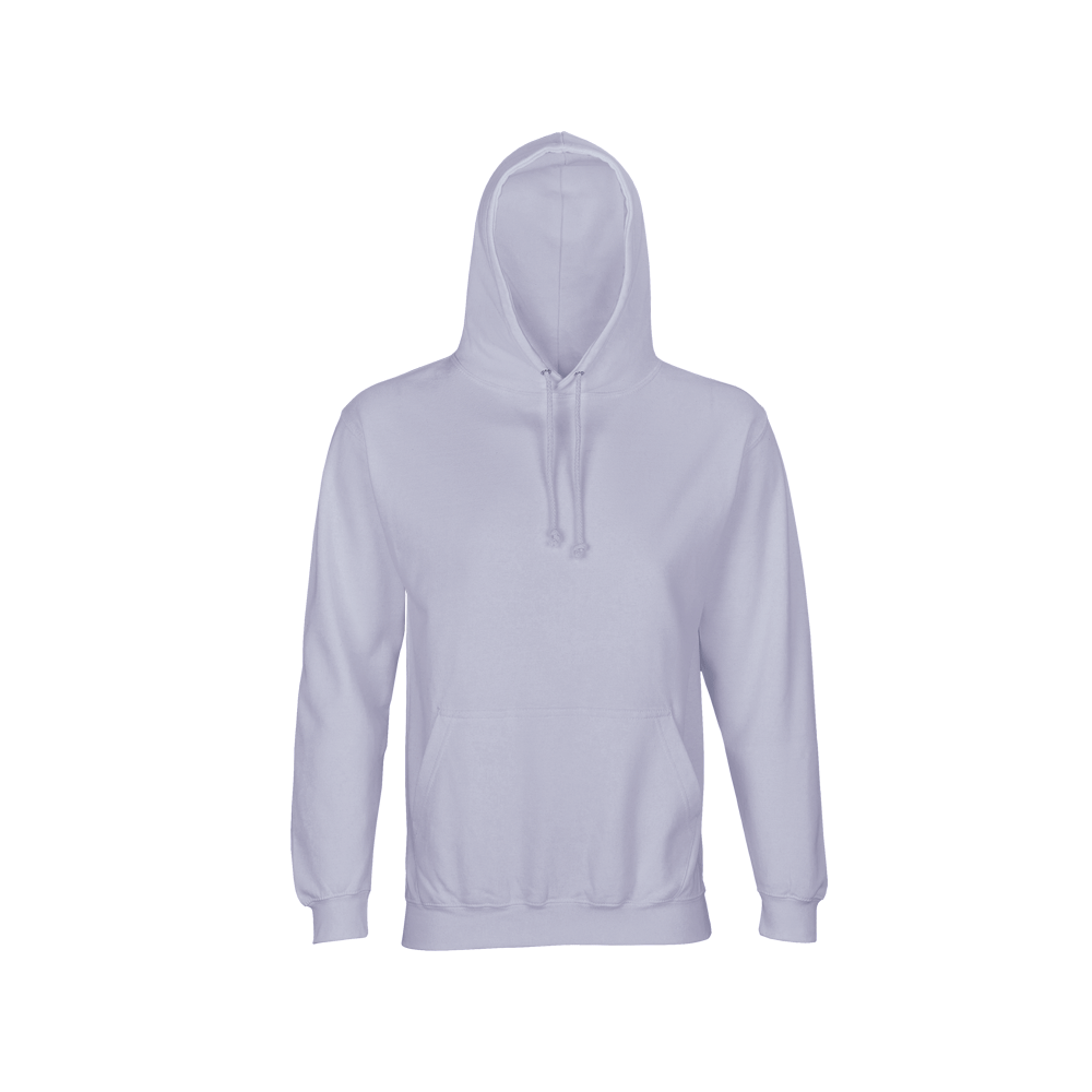 Tiene capucha forrada con cordón y bolsillo tipo canguro.