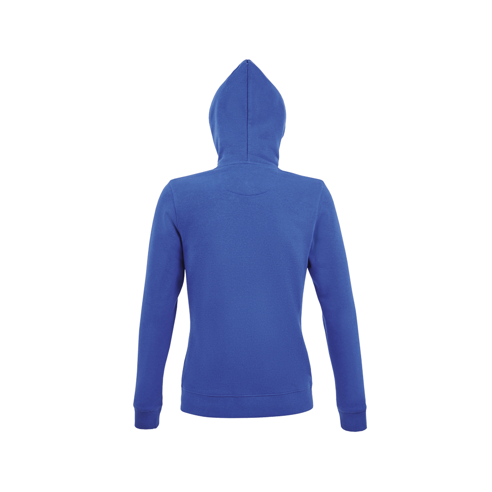 Interior perchado, exterior 100% algodón, 2 bolsillos tipo canguro y puños y bajos con acabado canalé 2x2.