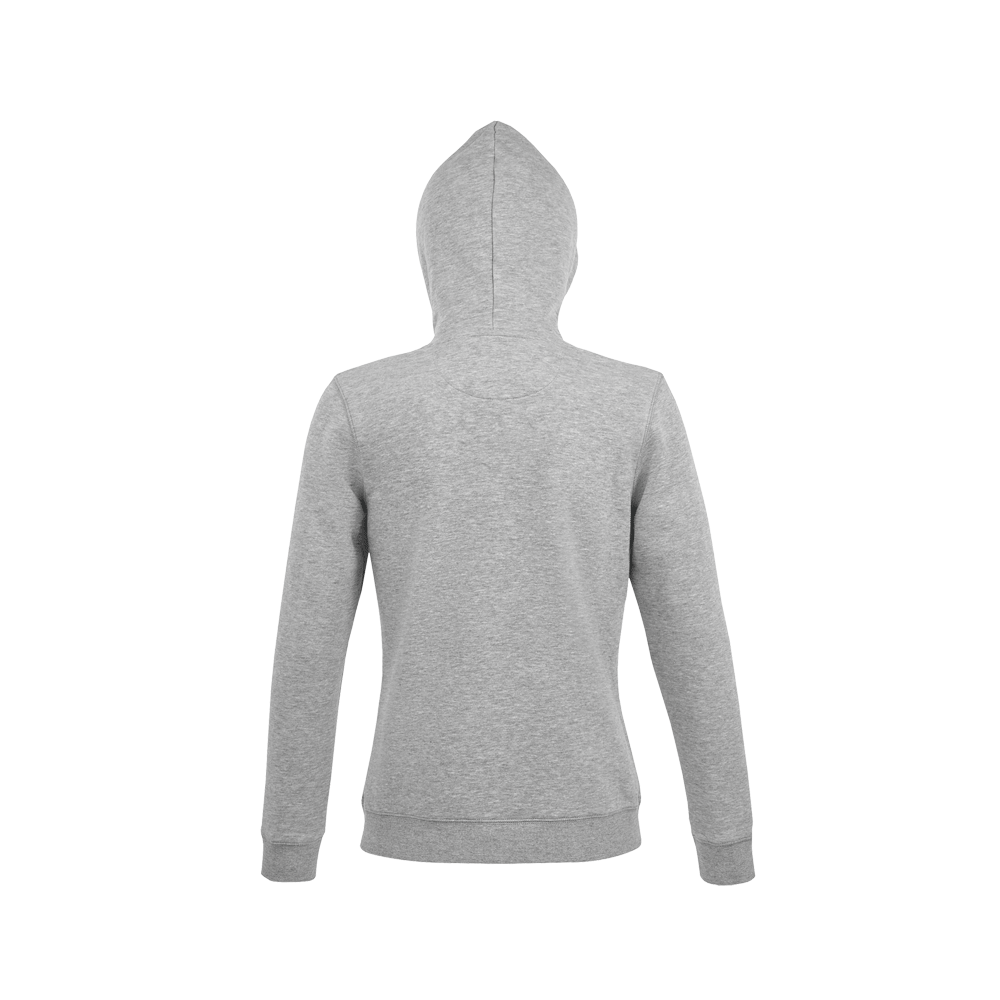Interior perchado, exterior 100% algodón, 2 bolsillos tipo canguro y puños y bajos con acabado canalé 2x2.