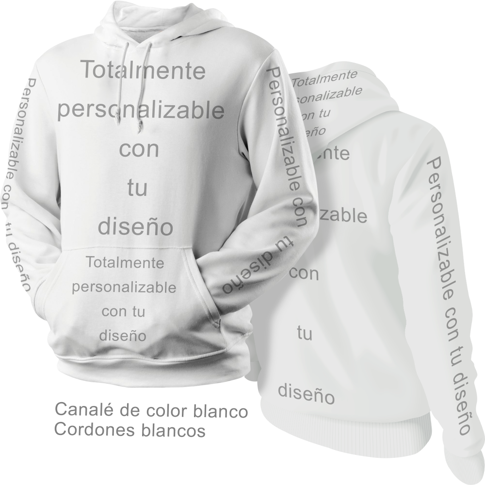 Personaliza la sudadera al 100%: delante, espalda, mangas y capucha (exterior)
