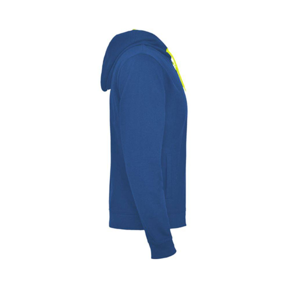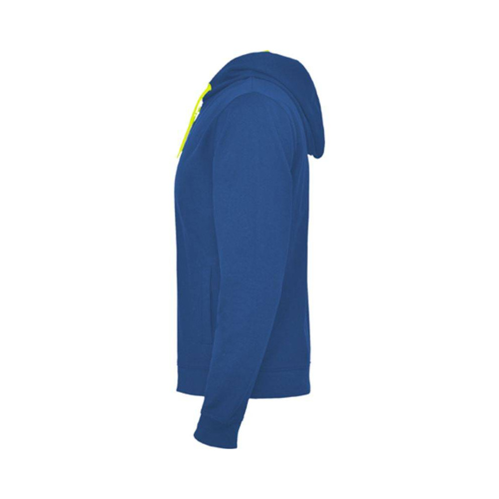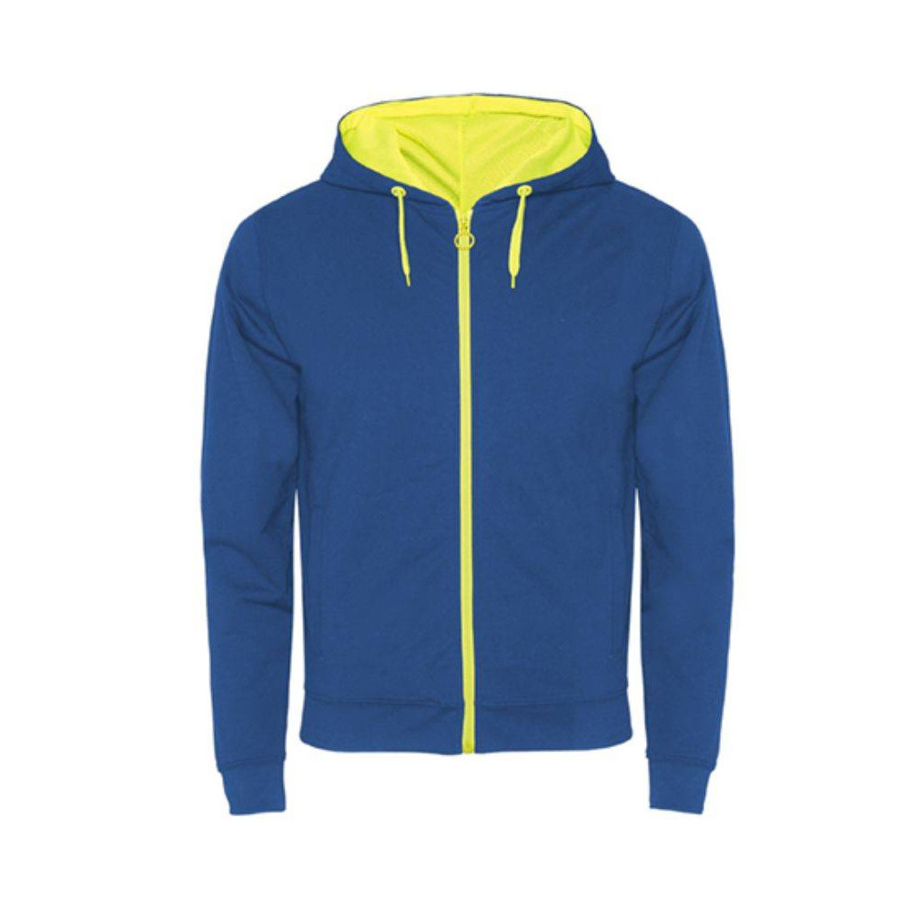 Cremallera central con tirador a contraste. Capucha con forro en tejido de poliéster microperforado en color fluor contrastante y ojales de cordón y metal en contraste en color fluor.