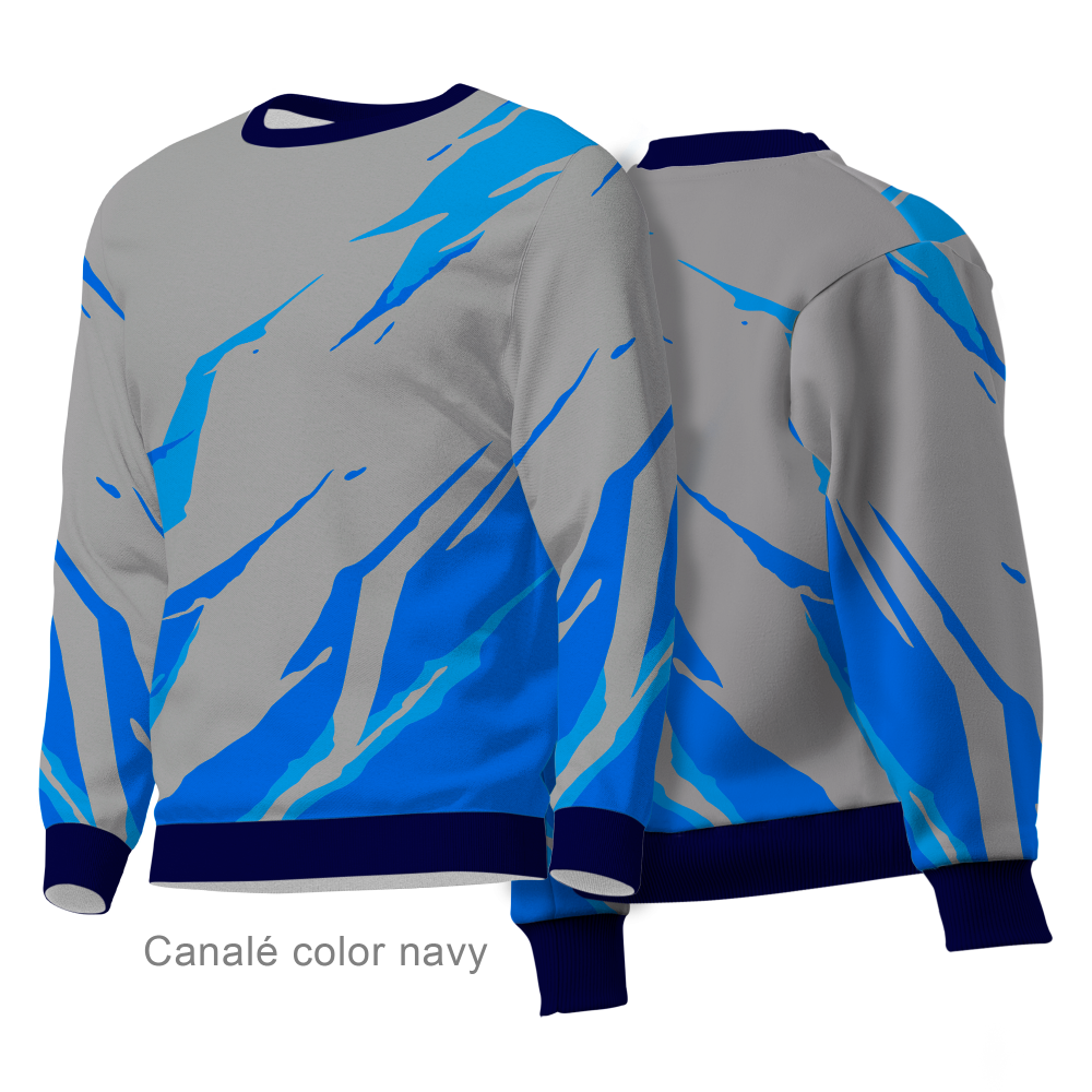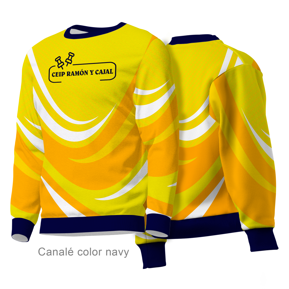 Sudadera de cuello redondo con canalé en cuatro colores a elegir para puños y cintura.