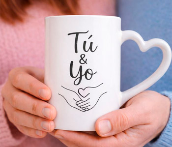 Recomendación de diseño: mejor texto corto o un dibujo simple; en tazas pequeñas, los diseños muy cargados se ven menos.