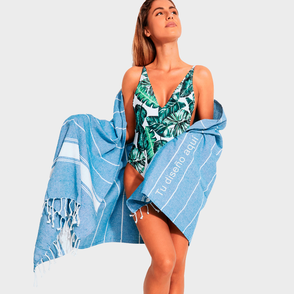 Para personalizar este pareo la técnica que debemos utilizar para que el diseño tenga alta definición, es el vinilo, tanto de corte a un color como vinilo de impresión a todo color.