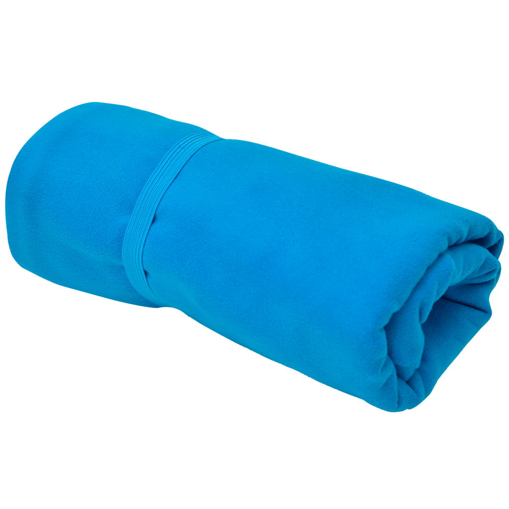 Toalla multi-deporte de microfibra. Ligera, compacta y fácil de transportar. Remallado con filamento de poliéster a tres hilos en el mismo tono. Secado rápido. Adorno elástico para plegado.